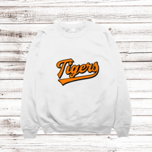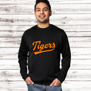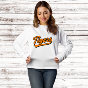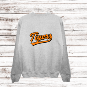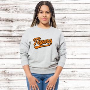 Show your school spirit with the stylish “Batter’s Up Tiger” sweat shirt! This eye-catching design features a fierce tiger in retro-style text, ready to knock it out of the park. Stand out, show your school pride, and join the cheer for the winning team! Get yours today and show off your Tigers spirit!